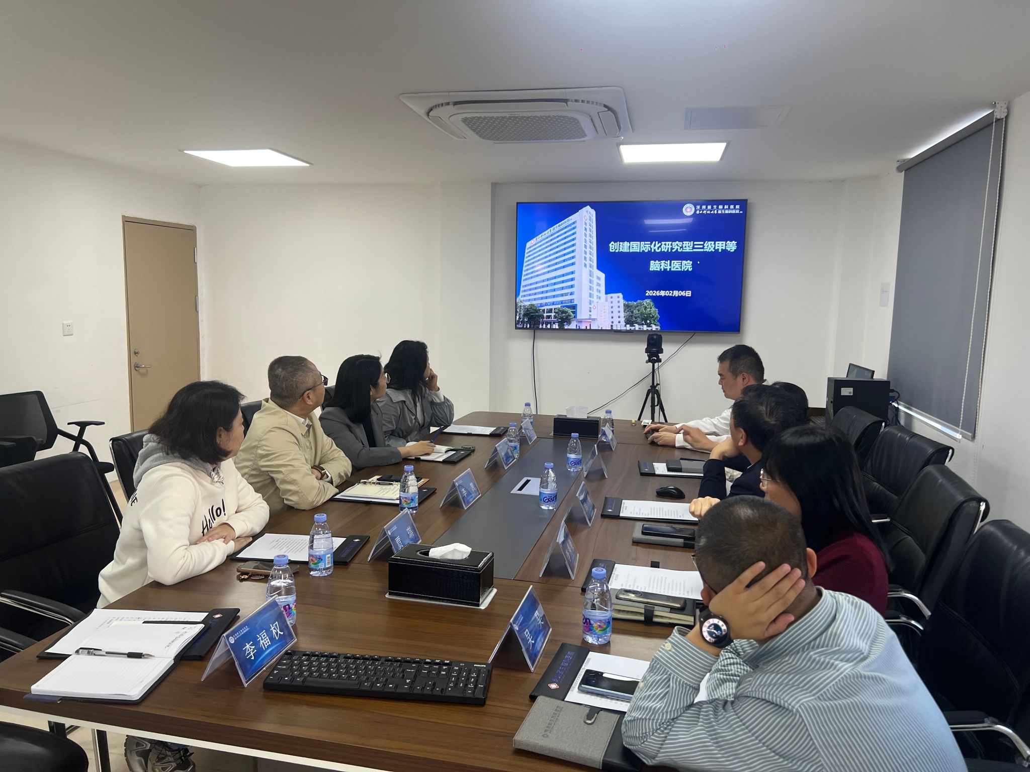 随后,双方在会议室举行座谈。深圳蓝生脑科医院副院长闫辉介绍了医院发展概况,李凯书记则介绍了医护学院人才培养与专业建设情况。与会人员围绕教学实践、实习就业、产学研合作、行走的思政课现场教学基地等议题进行了深入研讨,共同探索院校协同育人新模式。